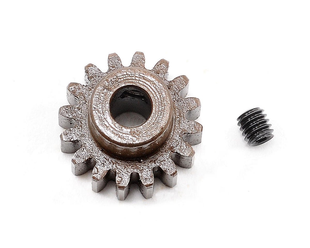 Robinson Racing Extra Hard Steel 5mm Bore Mod1 Pinion gears were developed for 1/8 scale applications and fit most 1/8 scale nitro spur gears perfectly. They are available in a variety of tooth count options to fine tune the torque and top speed of your model. Package includes one pinion gear and one 4x4mm set screw.